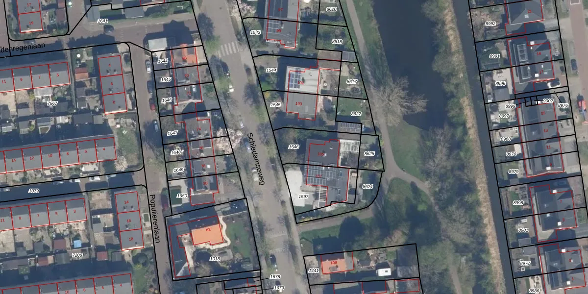 Gebruik de zoekbalk of klik op een perceel om informatie over het perceel te bekijken.