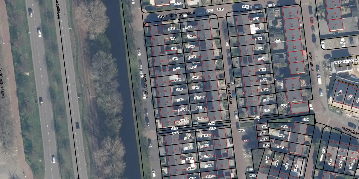 Gebruik de zoekbalk of klik op een perceel om informatie over het perceel te bekijken.