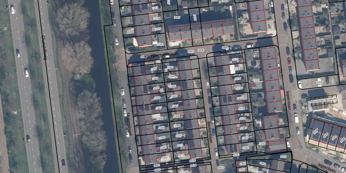 Gebruik de zoekbalk of klik op een perceel om informatie over het perceel te bekijken.