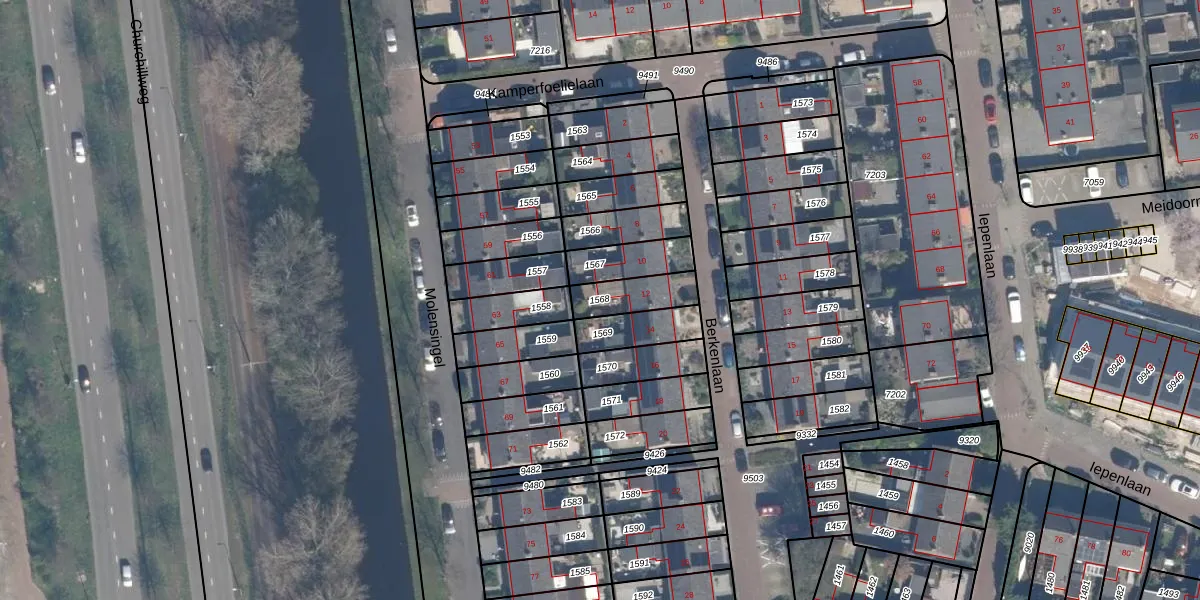 Gebruik de zoekbalk of klik op een perceel om informatie over het perceel te bekijken.