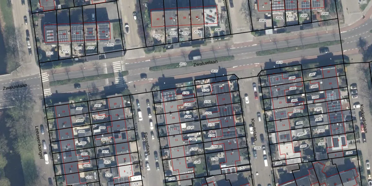 Gebruik de zoekbalk of klik op een perceel om informatie over het perceel te bekijken.