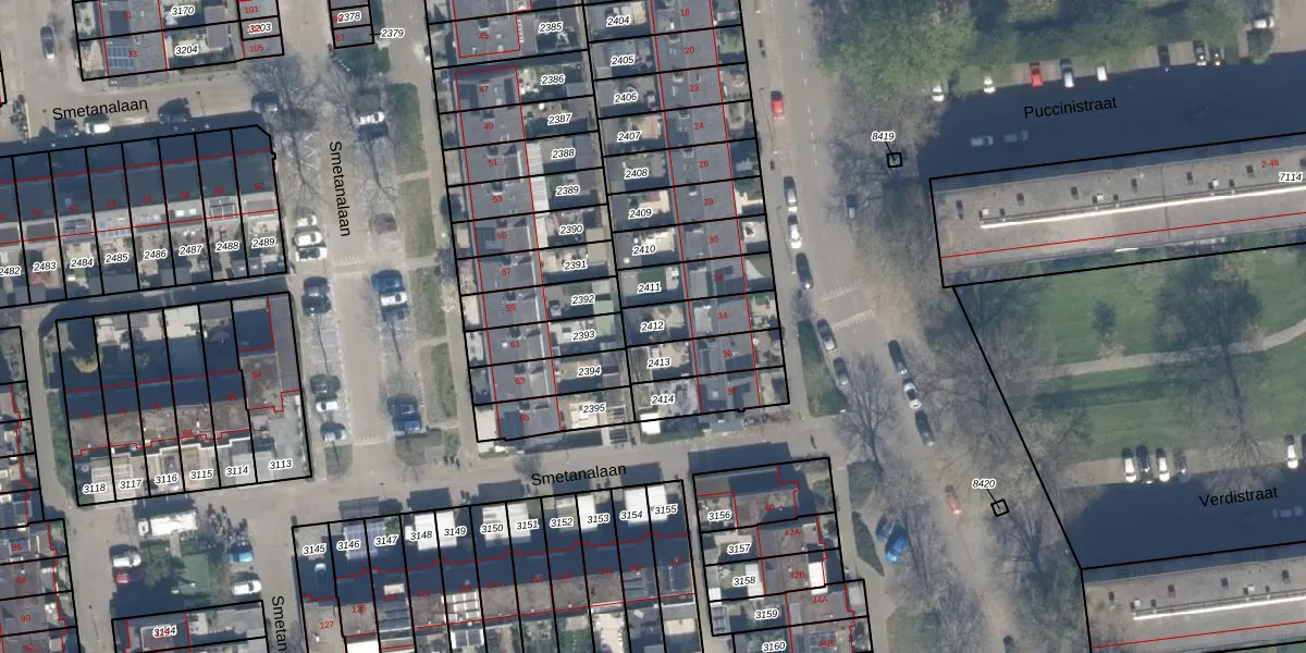 Gebruik de zoekbalk of klik op een perceel om informatie over het perceel te bekijken.