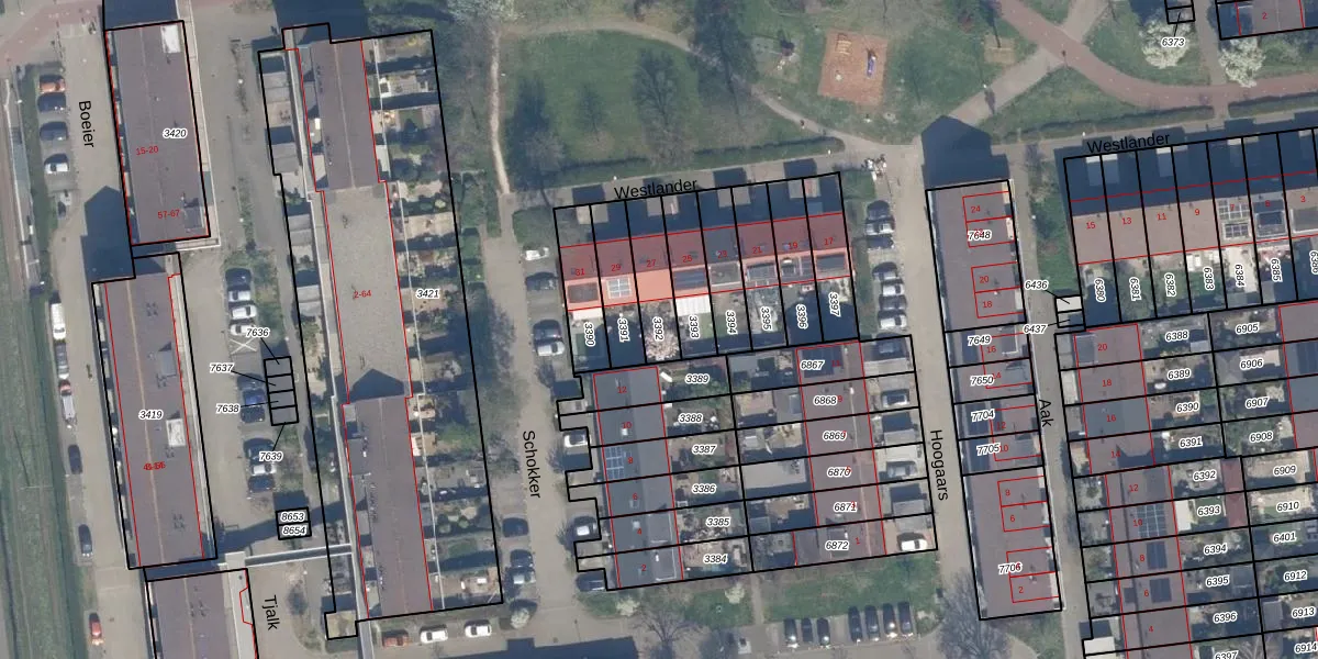 Gebruik de zoekbalk of klik op een perceel om informatie over het perceel te bekijken.