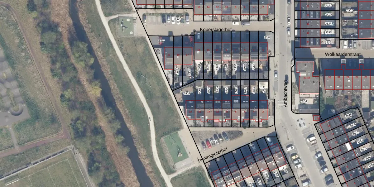 Gebruik de zoekbalk of klik op een perceel om informatie over het perceel te bekijken.
