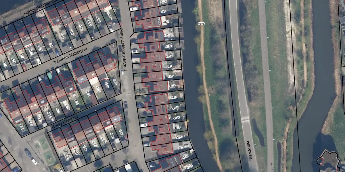 Gebruik de zoekbalk of klik op een perceel om informatie over het perceel te bekijken.