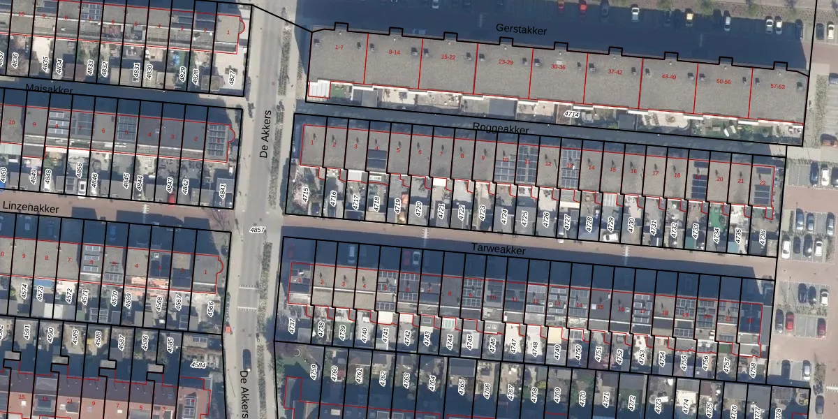 Gebruik de zoekbalk of klik op een perceel om informatie over het perceel te bekijken.