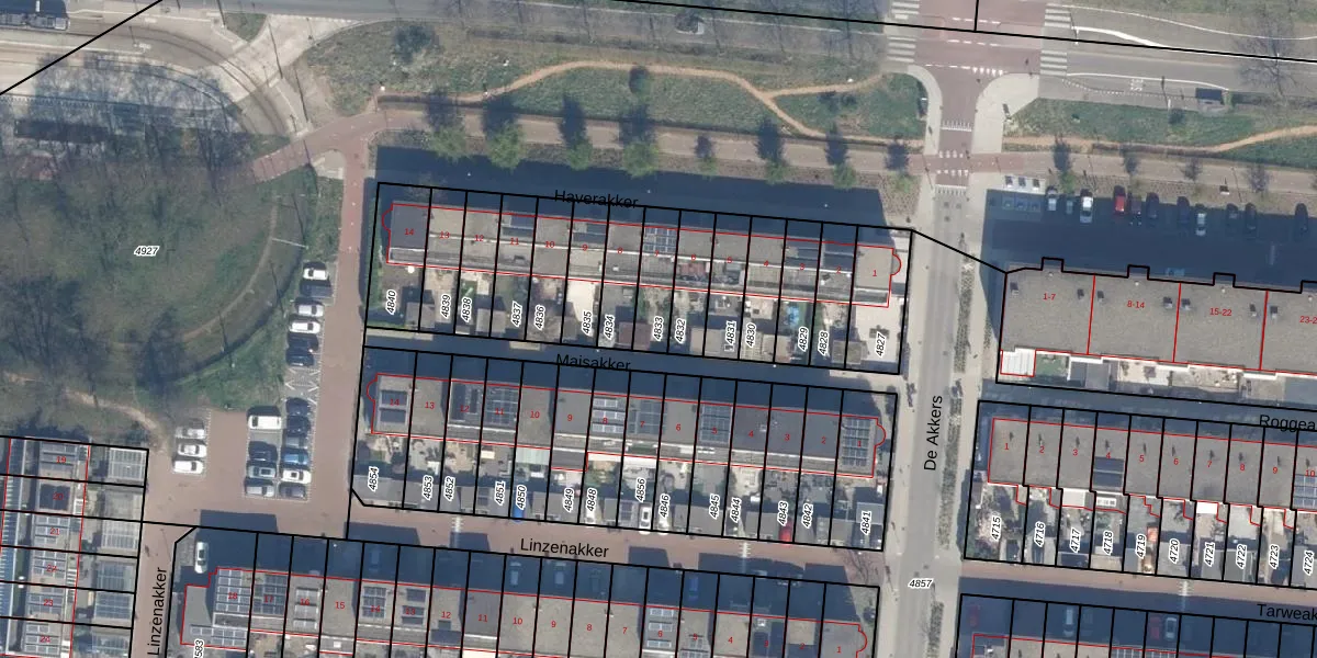 Gebruik de zoekbalk of klik op een perceel om informatie over het perceel te bekijken.