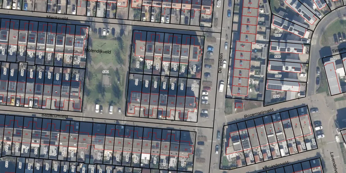 Gebruik de zoekbalk of klik op een perceel om informatie over het perceel te bekijken.