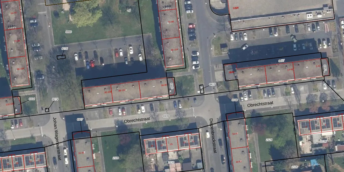 Gebruik de zoekbalk of klik op een perceel om informatie over het perceel te bekijken.