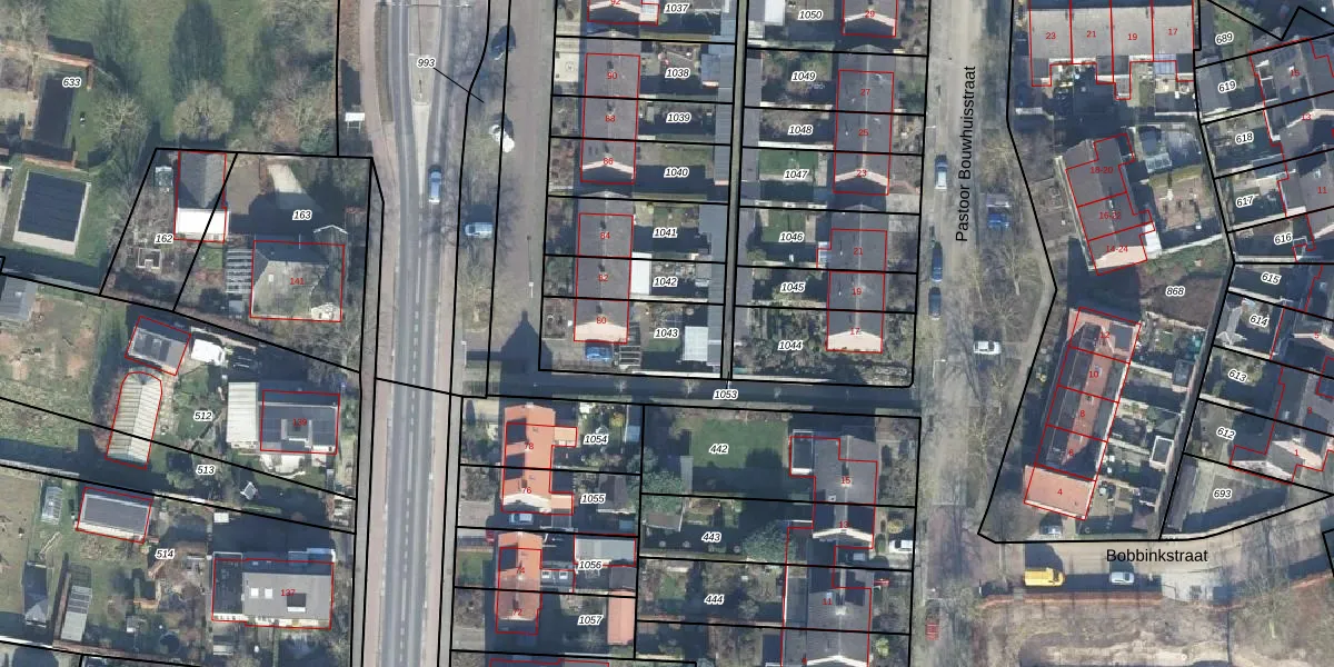 Gebruik de zoekbalk of klik op een perceel om informatie over het perceel te bekijken.