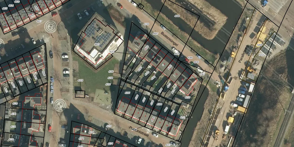 Gebruik de zoekbalk of klik op een perceel om informatie over het perceel te bekijken.