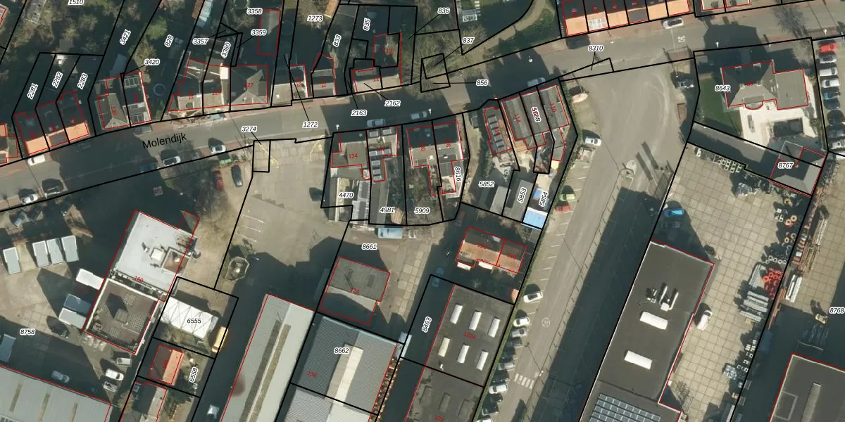 Gebruik de zoekbalk of klik op een perceel om informatie over het perceel te bekijken.