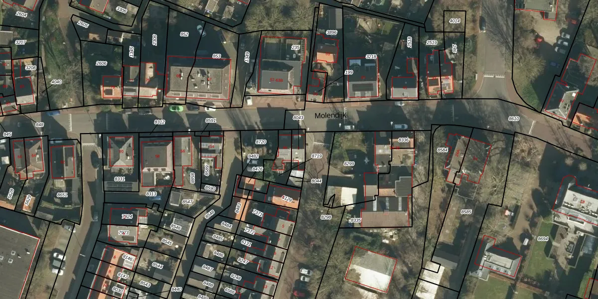 Gebruik de zoekbalk of klik op een perceel om informatie over het perceel te bekijken.