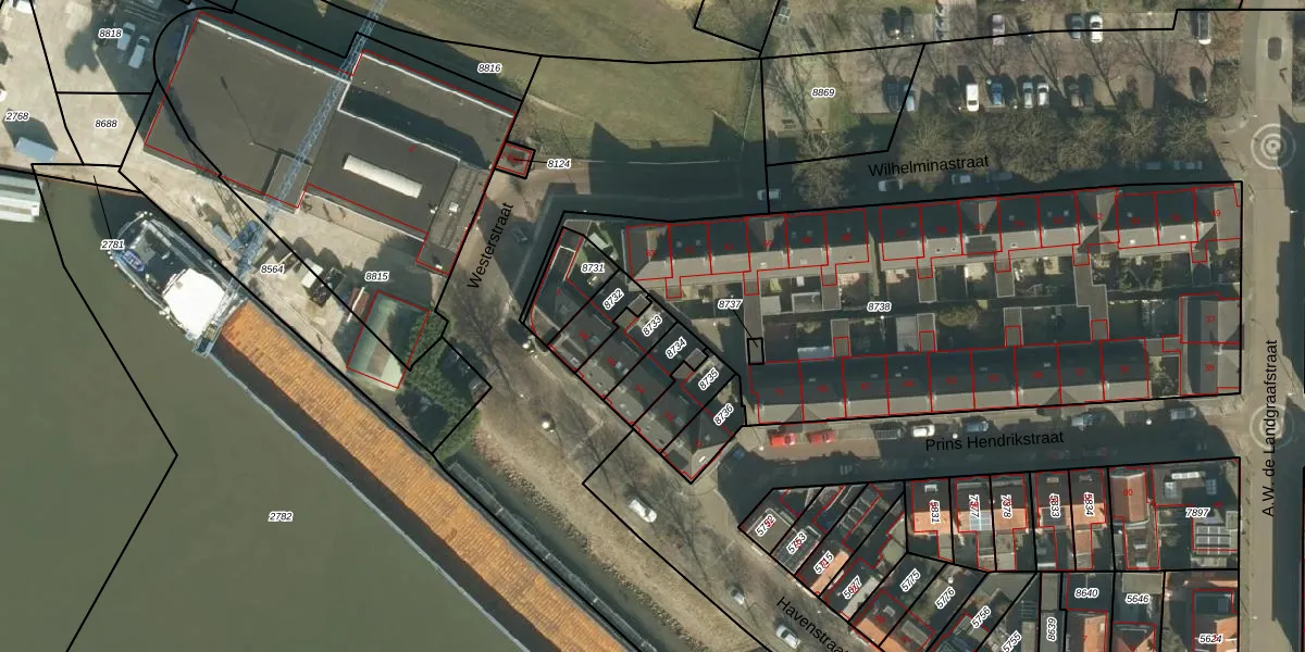 Gebruik de zoekbalk of klik op een perceel om informatie over het perceel te bekijken.