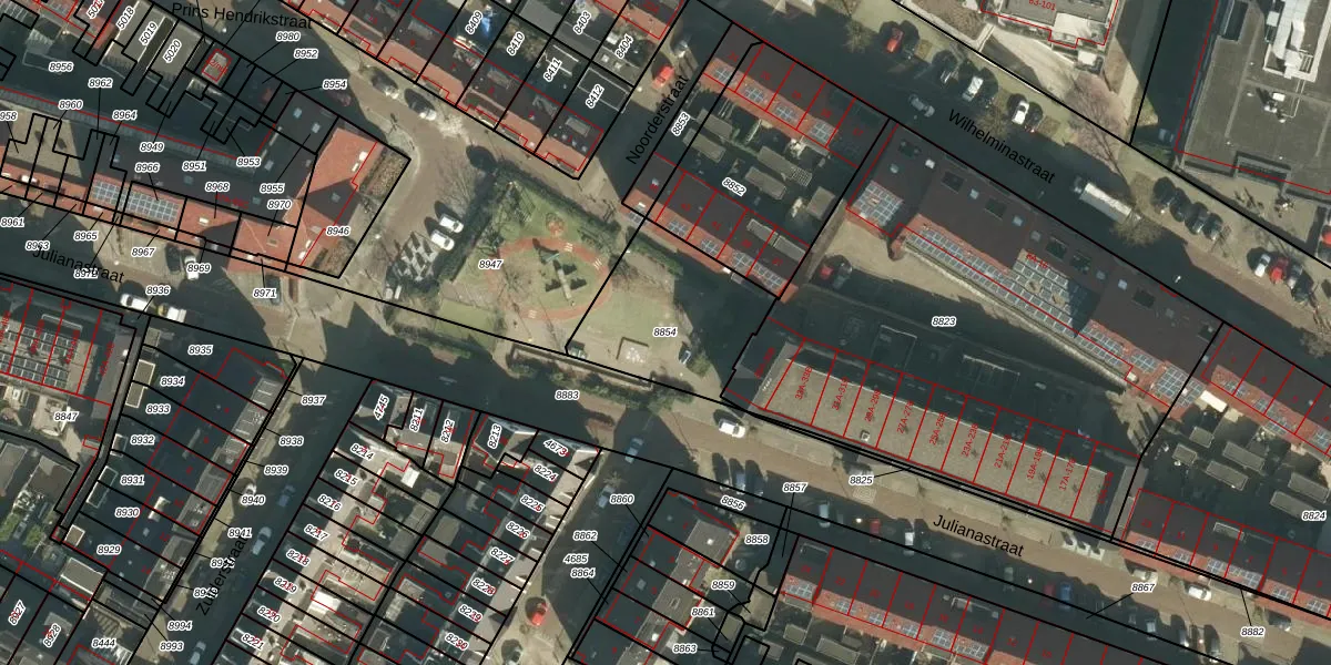 Gebruik de zoekbalk of klik op een perceel om informatie over het perceel te bekijken.