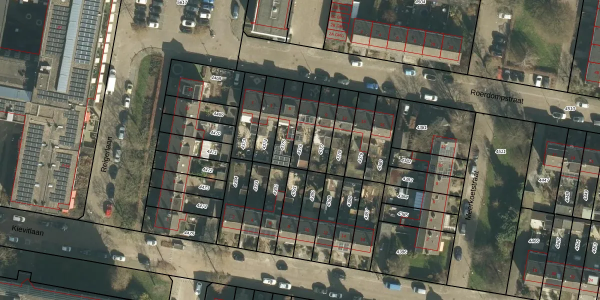 Gebruik de zoekbalk of klik op een perceel om informatie over het perceel te bekijken.