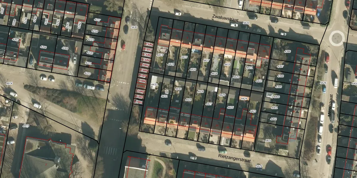 Gebruik de zoekbalk of klik op een perceel om informatie over het perceel te bekijken.