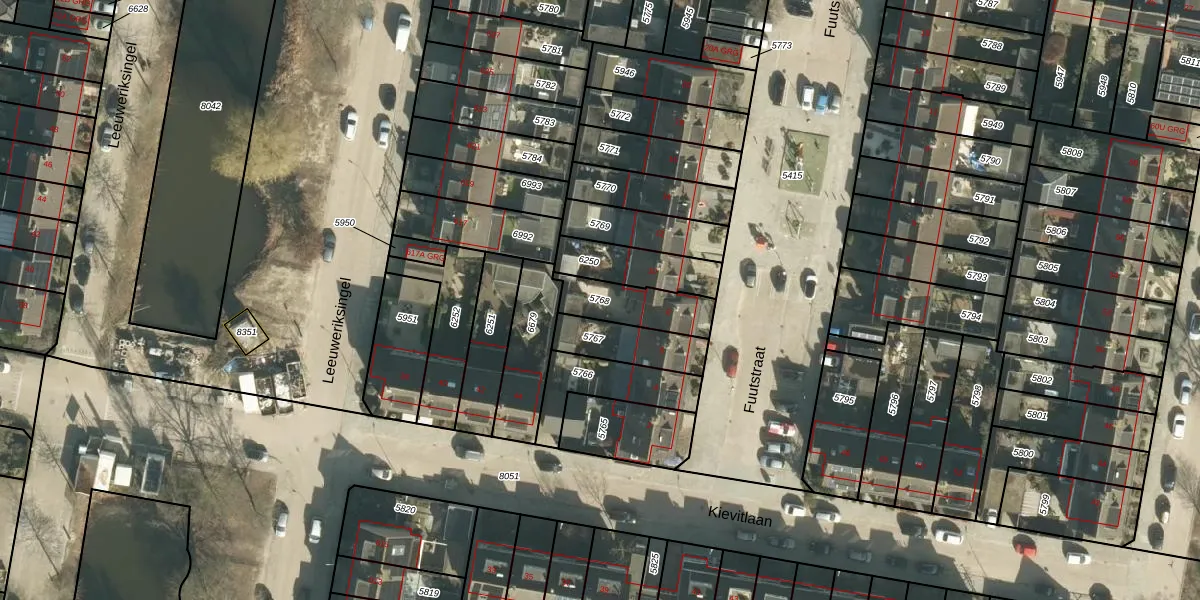 Gebruik de zoekbalk of klik op een perceel om informatie over het perceel te bekijken.