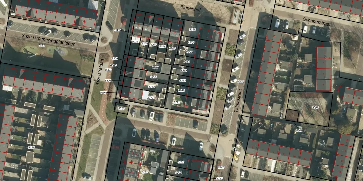 Gebruik de zoekbalk of klik op een perceel om informatie over het perceel te bekijken.