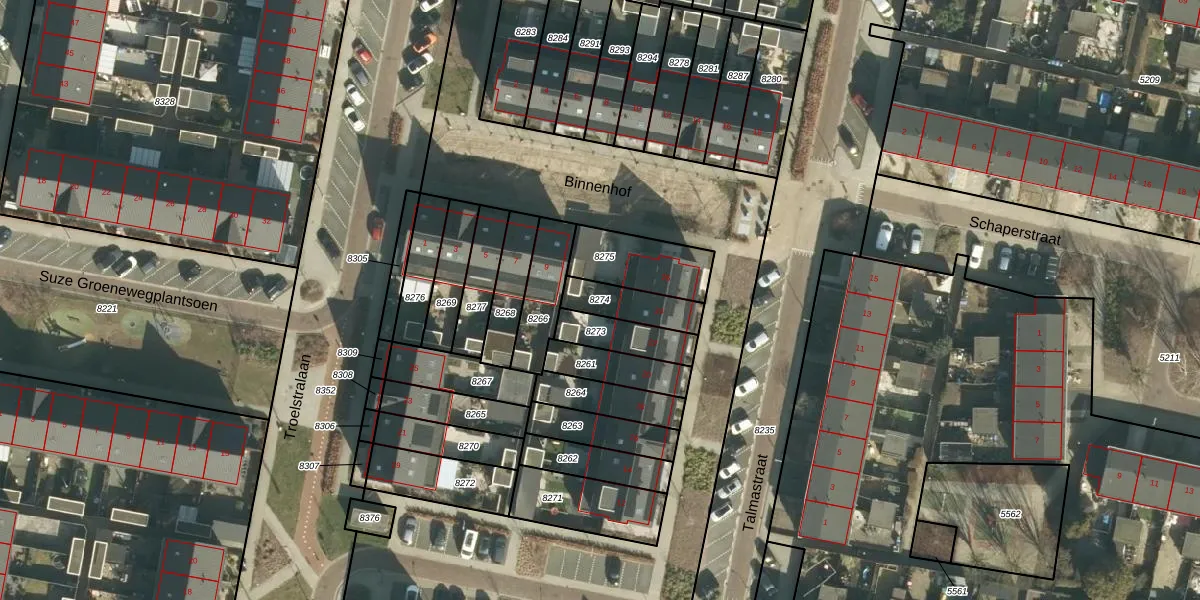 Gebruik de zoekbalk of klik op een perceel om informatie over het perceel te bekijken.