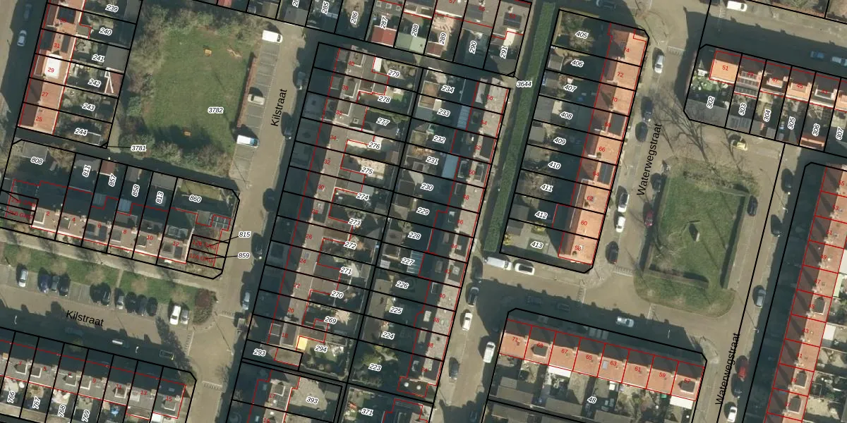 Gebruik de zoekbalk of klik op een perceel om informatie over het perceel te bekijken.