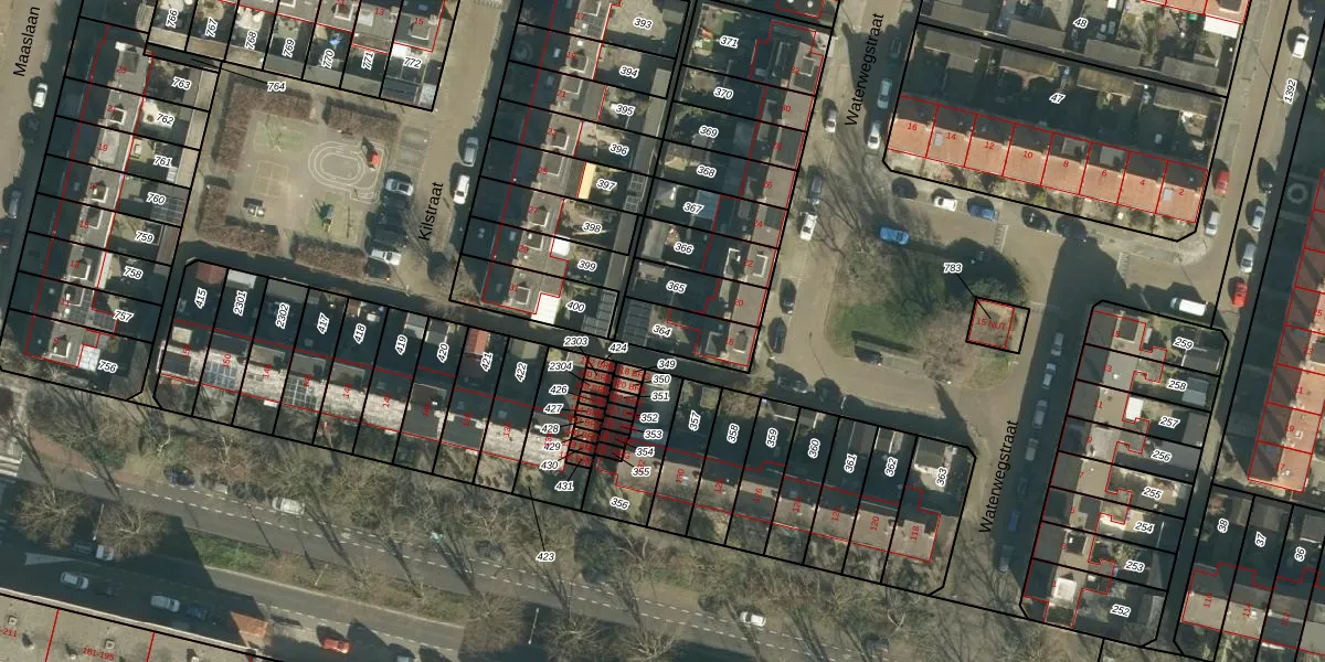 Gebruik de zoekbalk of klik op een perceel om informatie over het perceel te bekijken.