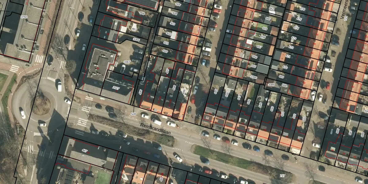 Gebruik de zoekbalk of klik op een perceel om informatie over het perceel te bekijken.