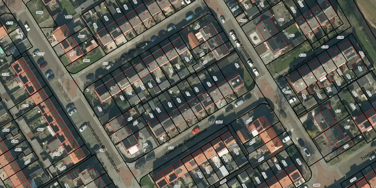 Gebruik de zoekbalk of klik op een perceel om informatie over het perceel te bekijken.