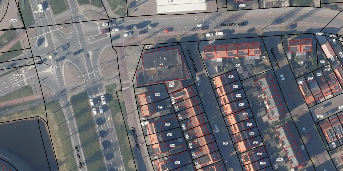 Gebruik de zoekbalk of klik op een perceel om informatie over het perceel te bekijken.