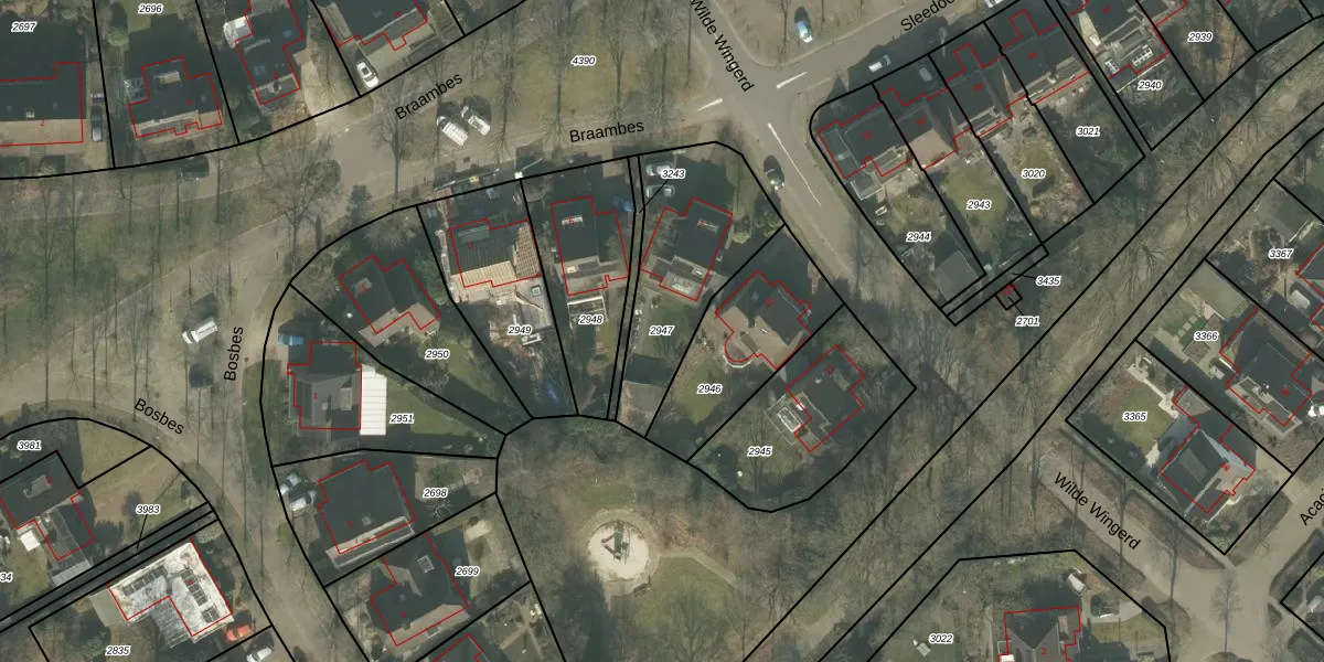 Gebruik de zoekbalk of klik op een perceel om informatie over het perceel te bekijken.