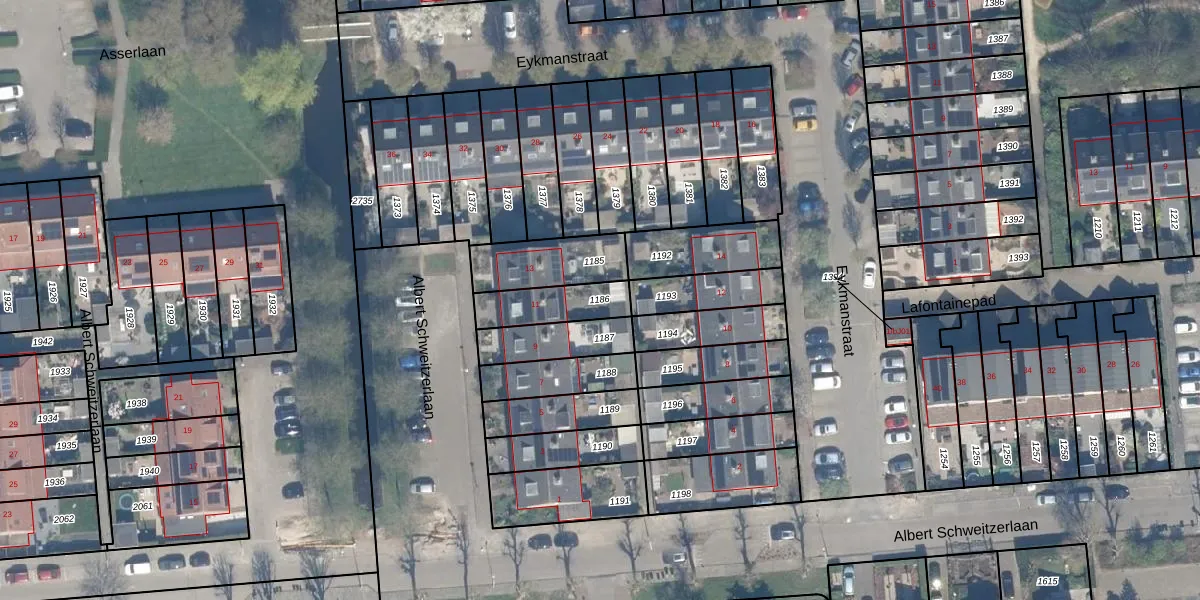 Gebruik de zoekbalk of klik op een perceel om informatie over het perceel te bekijken.
