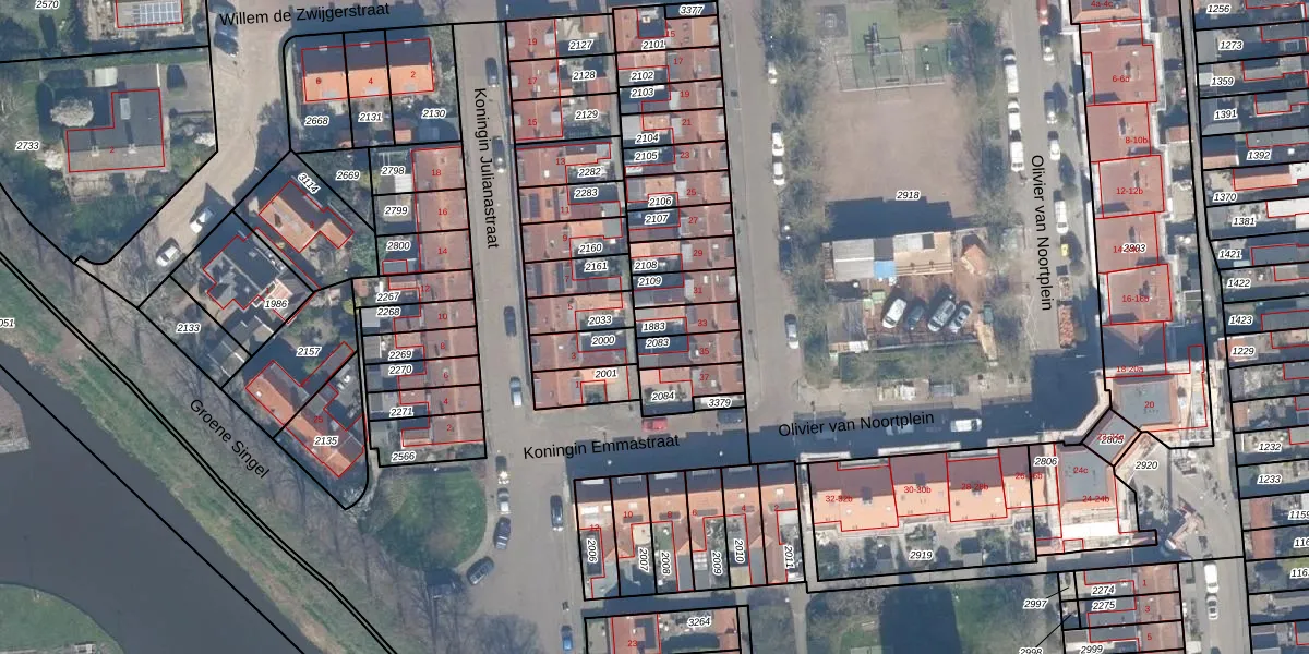 Gebruik de zoekbalk of klik op een perceel om informatie over het perceel te bekijken.