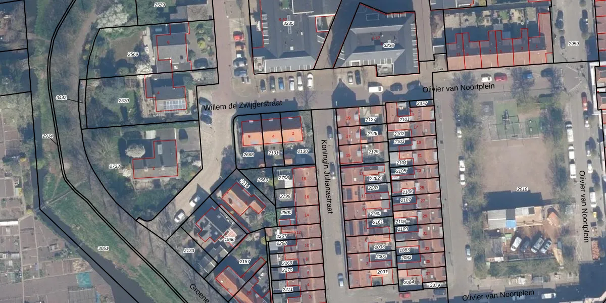 Gebruik de zoekbalk of klik op een perceel om informatie over het perceel te bekijken.