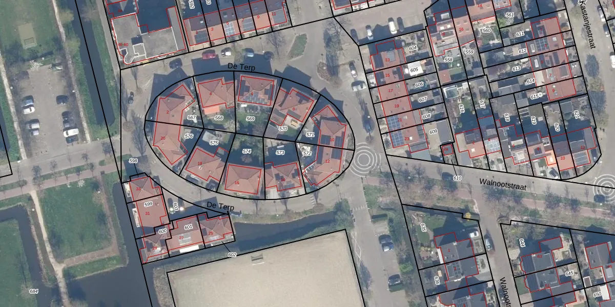 Gebruik de zoekbalk of klik op een perceel om informatie over het perceel te bekijken.