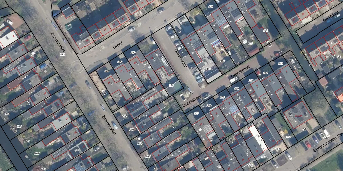 Gebruik de zoekbalk of klik op een perceel om informatie over het perceel te bekijken.