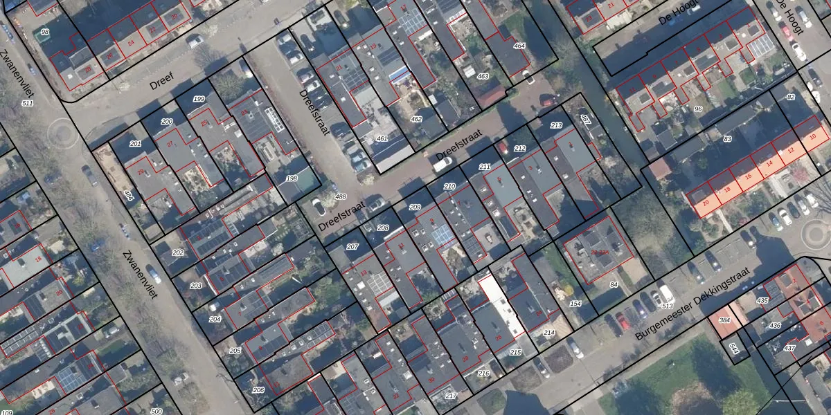 Gebruik de zoekbalk of klik op een perceel om informatie over het perceel te bekijken.