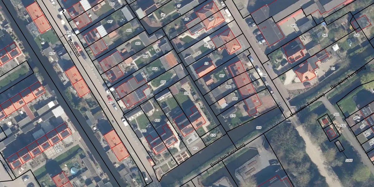 Gebruik de zoekbalk of klik op een perceel om informatie over het perceel te bekijken.