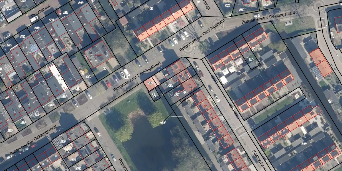 Gebruik de zoekbalk of klik op een perceel om informatie over het perceel te bekijken.