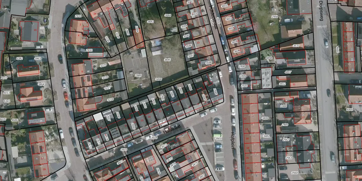 Gebruik de zoekbalk of klik op een perceel om informatie over het perceel te bekijken.