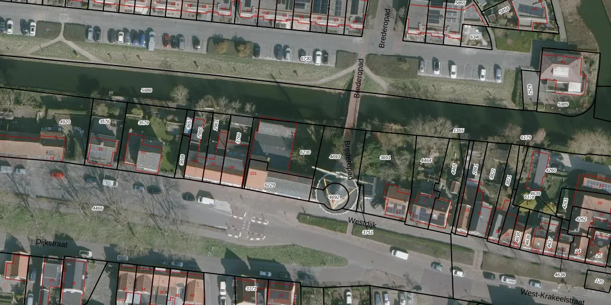 Gebruik de zoekbalk of klik op een perceel om informatie over het perceel te bekijken.