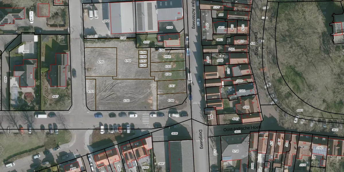 Gebruik de zoekbalk of klik op een perceel om informatie over het perceel te bekijken.
