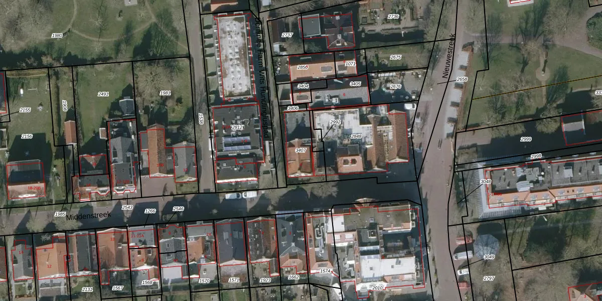 Gebruik de zoekbalk of klik op een perceel om informatie over het perceel te bekijken.