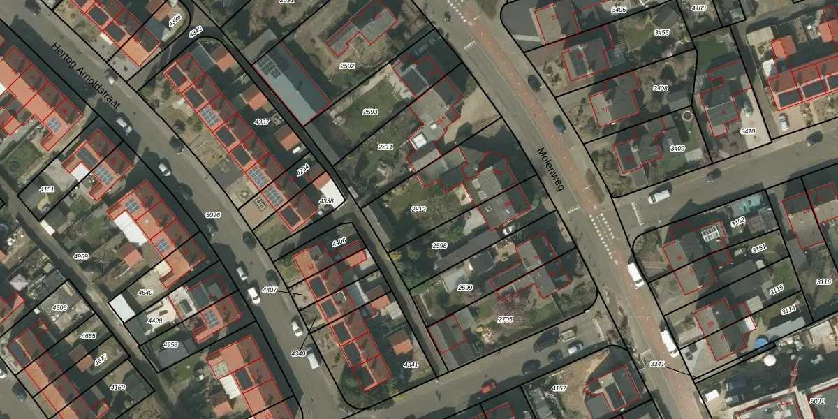 Gebruik de zoekbalk of klik op een perceel om informatie over het perceel te bekijken.