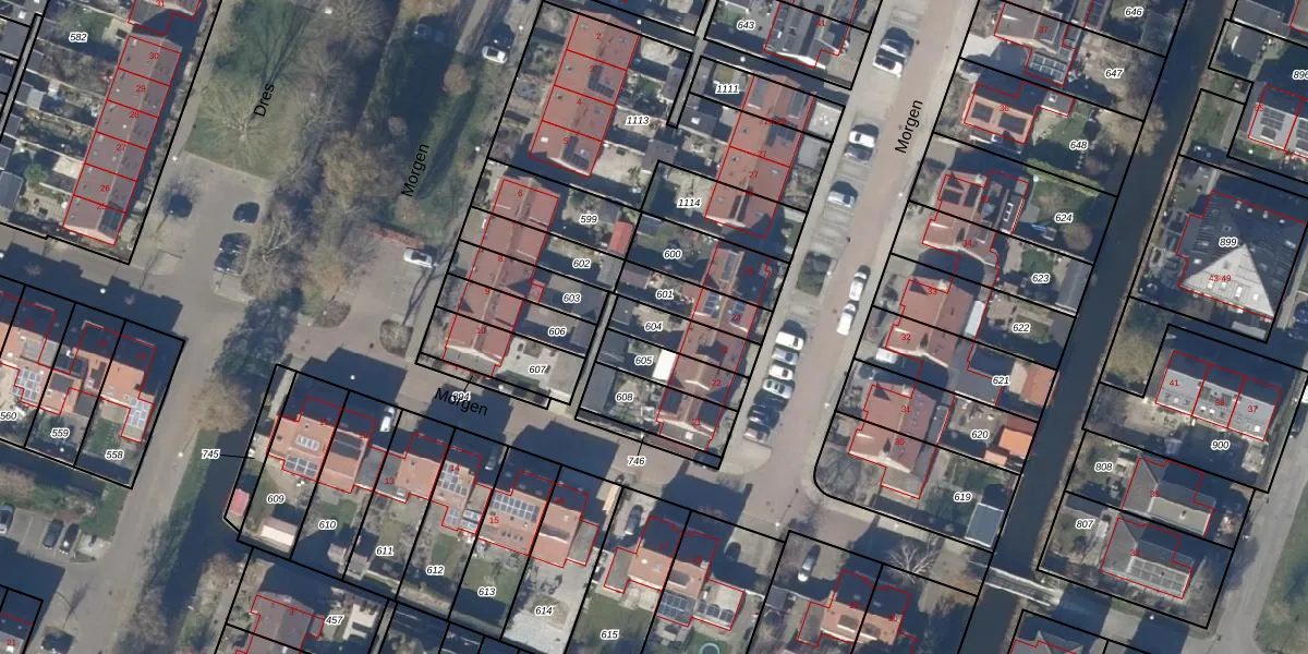 Gebruik de zoekbalk of klik op een perceel om informatie over het perceel te bekijken.