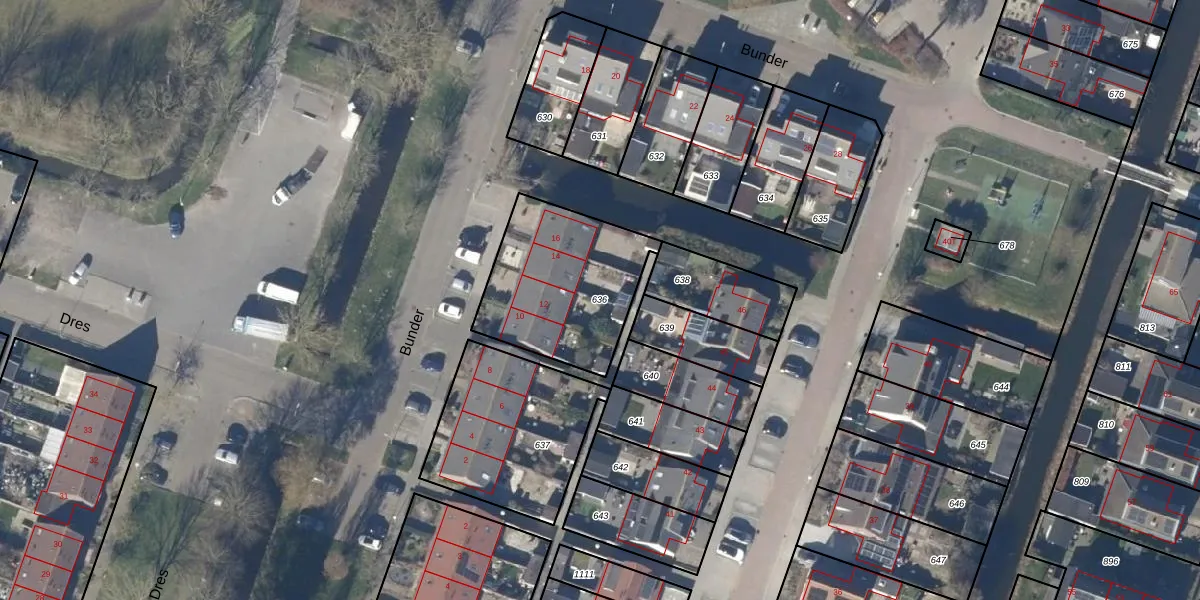 Gebruik de zoekbalk of klik op een perceel om informatie over het perceel te bekijken.