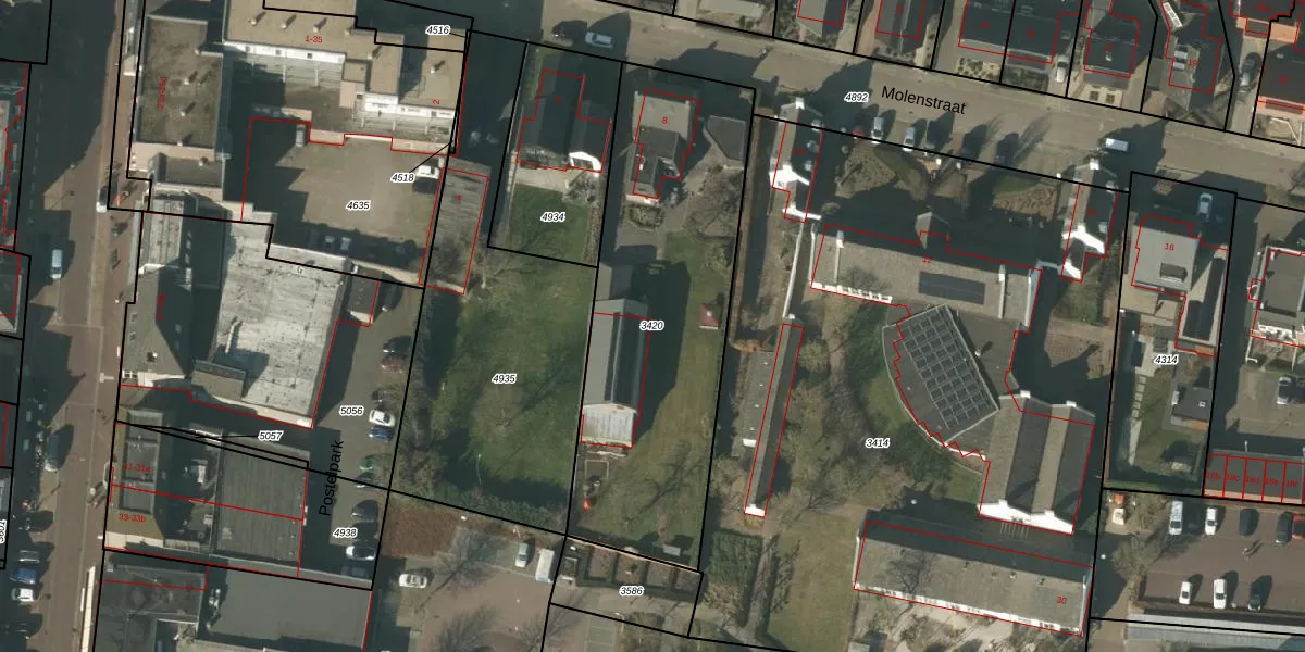Gebruik de zoekbalk of klik op een perceel om informatie over het perceel te bekijken.