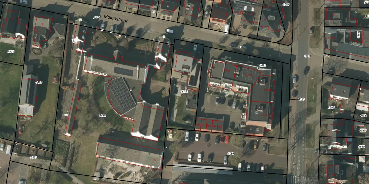 Gebruik de zoekbalk of klik op een perceel om informatie over het perceel te bekijken.