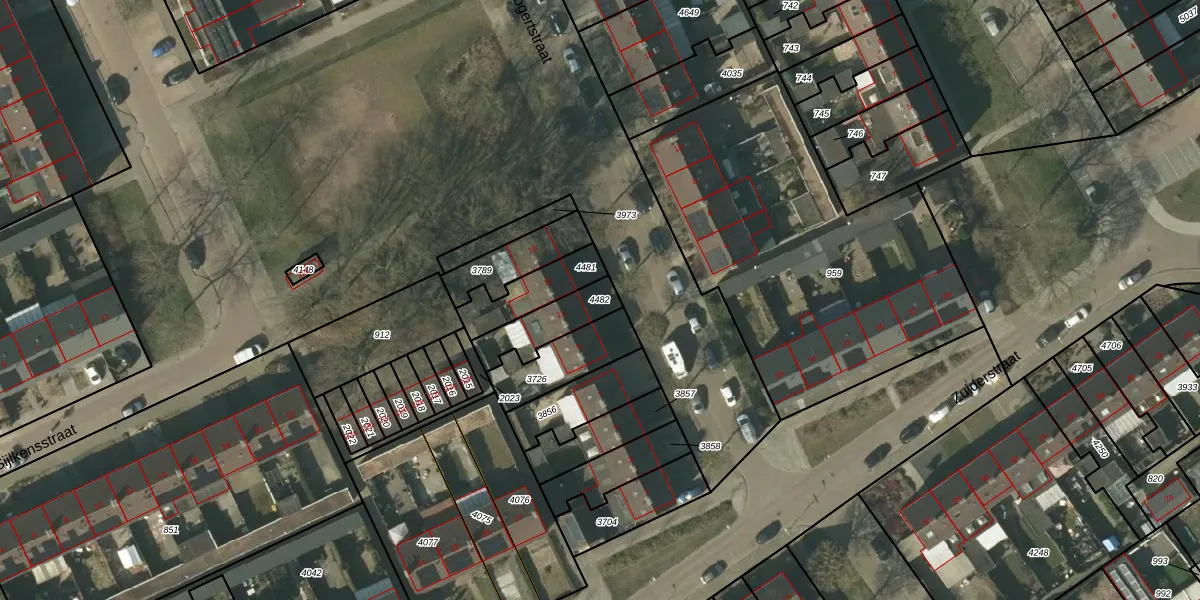 Gebruik de zoekbalk of klik op een perceel om informatie over het perceel te bekijken.