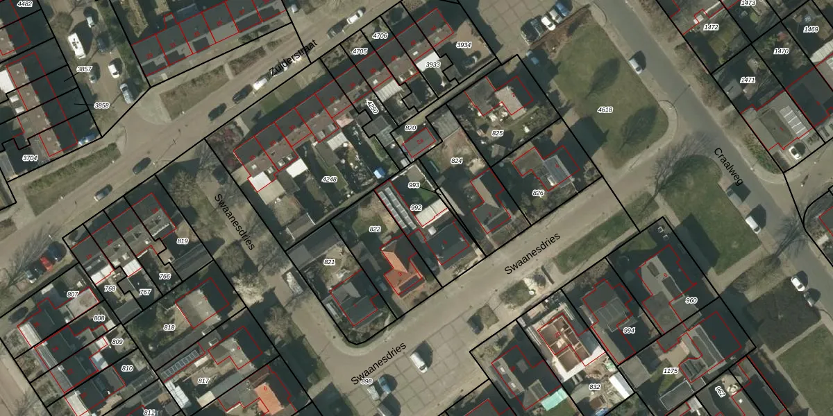 Gebruik de zoekbalk of klik op een perceel om informatie over het perceel te bekijken.