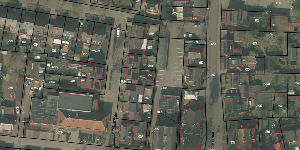 Gebruik de zoekbalk of klik op een perceel om informatie over het perceel te bekijken.